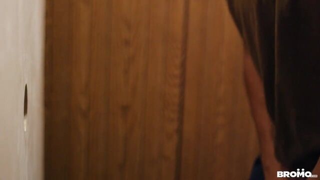 Milo Madera gets hard as he peeks through the glory hole at Bo Sinn, but when he tries to poke his uncut cock through the hole, Bo smacks it, beckoning him over to join him instead. The tattooed top fucks Milo's mouth, then puts him up against the wall to pound his ass. Milo rides Bo reverse on a chair until it breaks, so Bo stomps the seat into submission, sitting on the pieces as Milo lowers himself back onto Bo's pierced dick. Bo puts the bottom on the floor to penetrate him in missionary until he fucks the cum out of Milo, then makes him take a facial!
