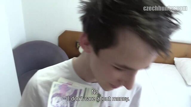 He answered me that he was waiting for his older brother when I asked him at the bus-stop. And he answered all my questions. I could ask him for how many times he has sex with his girlfriend... about how big his penis is... he was answering all. But when I wanted to see his dick I had to offer almost a fortune. Totally shy concerning his body. Though he was a real cutie in my eyes. Small, slim and with a seducing smile. And even after he agreed to show me his dick for not less than 5.000 CZK he was again arguing about wether to jerk with me in a hotel room or not... so really not an easy job for me this time. But after all I can say that it was worth it. He had an amazing hard prick and fucking his boy-cherry was heaven. He was totally unexperienced... well, he was.