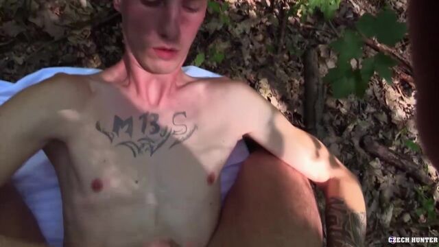 Thin twink gets fucked in the ass in the woods - Czech Hunter