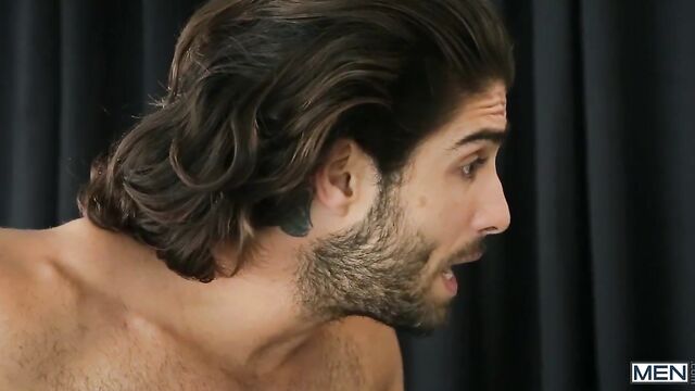 When Diego Sans hears the rumors that Adrian Hart has been spreading about him on his blog, he's furious and storms into his office demanding justice. Diego proves to Adrian that the rumors aren't true, giving Adrian a deep rim job right in front of his office plants. Adrian bends Diego over the chair and gives his cock a long, deep blowjob to verify that he loves men as much as he claims he does. The two horny fame whores fuck all over the office, proving that they're just as creative when it comes to sex positions as they are when coming up with drama. The two studs fuck and suck their way to the peak of pure pleasure, both of them blasting giant loads all over Adrian in this thrilling conclusion.