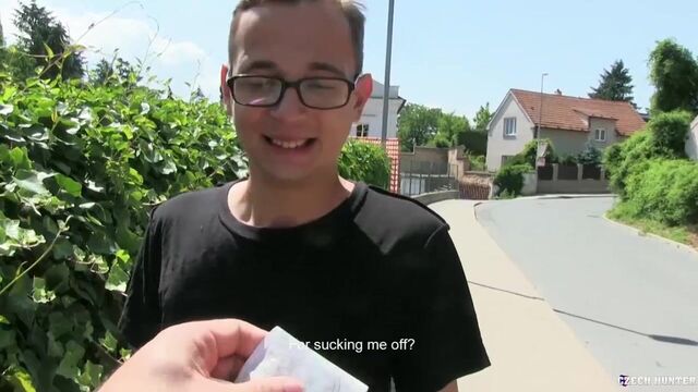 Nerdy twink in glasses gets fucked in POV in the woods - Czech Hunter