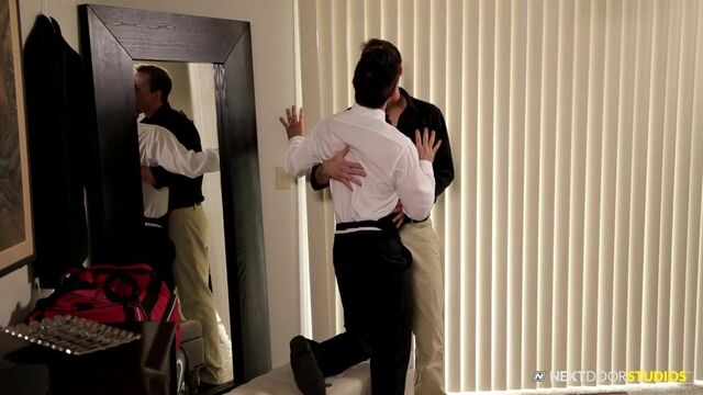 Derrick Dime has weathered the storm and finally made it to his wedding day. The hoops he's had to jump through just to get to this day have been almost too much for one man to endure, but he's said his vows and next he's off with his bride to start their honeymoon. There's just one small detail left to be attended to, and DJ Garrett Cooper is knocking on the door now to see to it.Looking to get paid, Garrett flashes a knowing look as Derrick searches his empty pockets for cash. Derrick suggests he might have cash in the car and Garrett asks him if by now he hasn't figured out how to handle these sort of situations. Derrick catches his meaning, checks the window to make sure it is clear, and then falls to his knees, whipping out Garrett's cock and sucking him off. Garrett strokes his cock as Derrick licks his balls, up the shaft and then to the head, downing it like a man determined.Garrett appreciates the head, but he's looking for the full monty, so he mounts Derrick and instructs the new groom to fuck his brains out. Derrick obliges, bouncing Garrett up and down on his rock hard cock as Garrett strokes himself off, before the guys switch and Derrick bends Garrett over, pounding him from behind as Garrett bends over an ottoman. Ready to bust his nut, Garrett lay on his back stroking his dick as Derrick pumps him full of married cock, every thrust bringing Garrett closer to climax until he finally explodes all over himself, as Derrick pulls out and blasts him with his matrimonial load, knowing he may have his straight married life ahead of him, but he'll always have his secret connection to remember his wedding for the rest of his life.Enjoy!