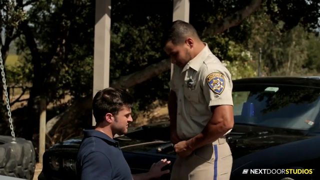 - Description: Officer Kaden Alexander is just trying to keep the streets safe, but if every now and again that translates to a few fringe benefits, well... who's gonna blame a cop for using his stick every now and again, right?Such is the case as Officer Alexander happens upon Abel Archer pulled over on the side of the road. As he approaches the vehicle, Kaden sees that Abel is taking a little personal break, indulging in a bit of me time, and is more than a little flustered when Officer Kaden knocks on his window. Abel, knowing he's been caught red handed (literally) scrambles around to get himself out of trouble, offering to take care of the officer in exchange for some lenience.Officer Kaden, usually above a bribe, takes a long look at what Abel is packing and decides this might be an offer worth taking up, so the two of them move to a more private location and Abel immediately begins sucking off the cop. Kaden returns the favor but decides if he's going to forgive Abel's transgression, then Kaden's gonna need to get his dick wet, so he bends Abel over his car and proceeds to pound his delinquent ass in the hot sun. They move to a nearby tire swing and Abel mounts Kaden, bouncing up and down on his hard cock, then sitting down and grinding on it, shooting his hot load all over the ground as Kaden pulls out and blasts him with his rod, sprayng jizz all over Abel as a reminder to follow the law a little more closely next time.Enjoy!