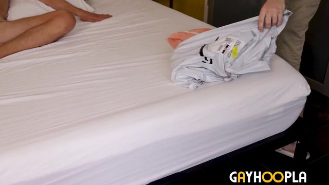 Mason Skyy was just doing his job as a proper delivery man when he noticed the package was damaged upon drop off. So he inspected closer and found a big dildo poking out. At that exact moment, he looked inside to see Thomas Rosewood, completely naked, jerking off, AND signaling him to come in. Oh boy, what happens next? Thomas convinces his delivery guy to fuck him in the ass for the FIRST time ever.