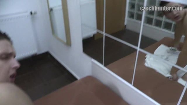 Dude moaning loudly during sideways fucking by the mirror - Czech Hunter