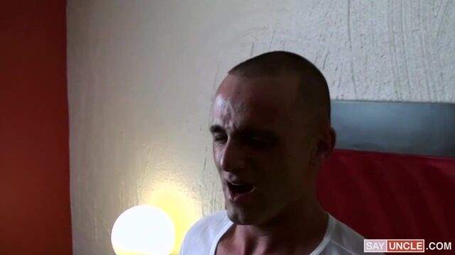 Bald-headed hottie Brother Ward jerking off on a spacey bed - Missionary Boys