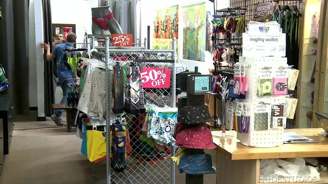 Kory is in talks with his therapist about how he likes public sex and the thrill of being caught or someone watching. He can't get enough of the thrill and begins to explain in detail to his therapist his latest encounter at a clothing store. Kory was cruising the clothing store when he saw a super sexy man looking back at him. He followed him around the store until Angel gave him the nod and Kory followed him to the dressing room. No employees in sight so they went behind the curtain and he got down on his knees and began sucking Angel off. His beautiful uncut cock was driving Kory crazy as he yanked and nibbled on the foreskin while stroking his long shaft. He couldn't get enough of that dick and was in heaven as Angel began to face fuck him. Right in the middle of this hot encounter the employee calls out to them to make sure everything is all right which of course it is but that freaked out Angel so they stop and pull their pants up and head into the stock room for some more fun. Now in the stock room Angel rips Kory's pants off and bends him over the metal table and dives in face first lubing up his ass with his wet tongue. The encounter is intense and neither wants to get caught before they get the chance to fuck. Kory pulls out a condom and instantly Angel puts it on and slowly goes deep into that eager ass. Luckily for Kory Angel takes it easy on him in the beginning but once he is warmed up and his cock harder than a rock he goes deep and hard and from being bent over to having Angel flip him over onto his back and being fucked even more was everything plus more that Kory could ask for. Kory blasts a thick white nut on his chest and Angel leaves his juices all over him as well and they both scurry to put clothes back on and run out of the stock room before being caught. Enjoy!