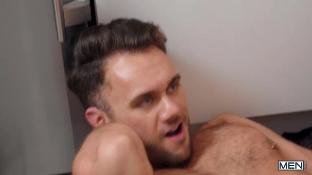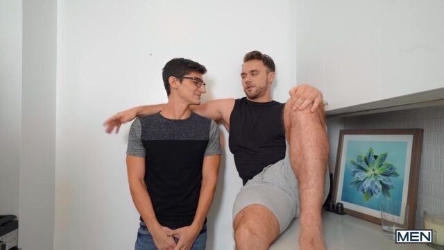 When his buddy Aiden Ward starts freaking out after losing his job, Blaze Austin offers him a sip of the elixir of smooth, soothing brains: Himbo Juice. Okay, it's just water, but with the power of the placebo effect, Aiden starts feeling super relaxed... and super horny! The guys start making out and sucking each other's cocks in the kitchen, and then Blaze bends over with a foot up on the counter as Aiden fucks him doggystyle. He rides Aiden on the floor, and the horny himbos fuck missionary till Blaze shoots his load, and Aiden cums in his mouth. That Himbo Juice really works!