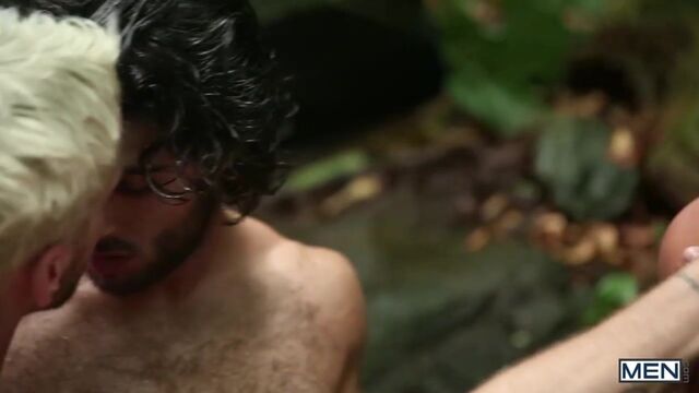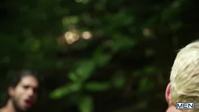 Colton and Luke are wandering around the jungle looking for Tobias and decide to stop for some rest. Tarzan pops out of nowhere with Tobias in tow. Reunited at last! Tobias explains where he's been and what he's been teaching Tarzan; who is eagerly pawing at his 2 new discoveries. It doesn't take much longer before all four of them are sucking and fucking.