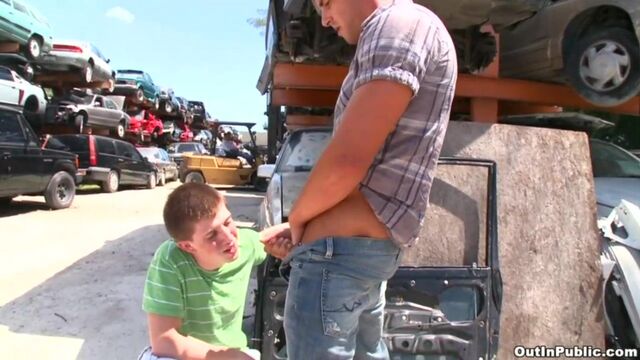 Donny is a shy dude with hope of getting laid in Miami. Jordan is a dude who likes it when dudes grab his junk. Neither one of them have ever done anything remotely sexual in public, but today is their day! Joey has a way of convincing these guys to to the most outlandish things in public. It's called cold hard cash! Jordan just so happened to be walking back for having a bite to eat unaware he would be eating some cock in a junk yard of all places. For a couple hundred buck Jordan agrees to suck Donny's cock. They head behind some local businesses and find them selves in a junk yard. Jordan pulls Donny's pants down to his ankles and begins to work on it. After both guys get all hot and bothered it seemed easier to ask if they would be down to fuck. Jordan hesitates for a minute due to Donny's large sized dick, but where there's money there's a way. Would you believe these freaky boys got it on right next to some guy working in the junk yard? It's nerve wrecking just to watch it, but it must of felt exhilarating for the guys. They fuck like they're in heat for a while when the same guy, oblivious the whole time until that very moment, caught a glimpse of what was really going down. The man kicks them out screaming obscenities in Spanish. This was fun to say the least.