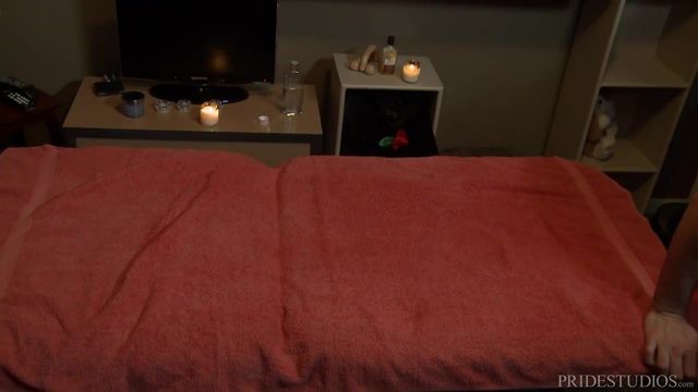 Marcus Isaacs has a sexy surprise planned for his honey Max Sargent. They were supposed to watch a movie together on the couch but after a bit of strategic kissing and nipple play neither one of them can concentrate much on the TV. Marcus suggests they take things to the bedroom, but little does Max know that Marcus has set up a massage table in the guest room. Some mood lighting and Marcus' hot otter bod set the perfect scene for Max to strip down and park his beautiful ass onto the table for a sensual rubdown.Marcus starts with a bit of oil and applies some loving pressure to Max's back, before taking things lower to Max's tight, kissable ass. It looks so delicious that Marcus can't resist giving it some playful, loving bites, and Max reciprocates with a hand on Marcus' stiff cock. Marcus gets his lover to flip over and he gets Max's dick worked to a big stiff hard-on with the delicate touch of his hands and mouth. He gives his partner a loving blowjob and then Max returns the favor, before Marcus hops up on the table and grinds and rides Max's big dick like a champ. Marcus takes a deep pounding from his muscular stud until Max releases all that built up tension with the happy ending only a dedicated lover can give.