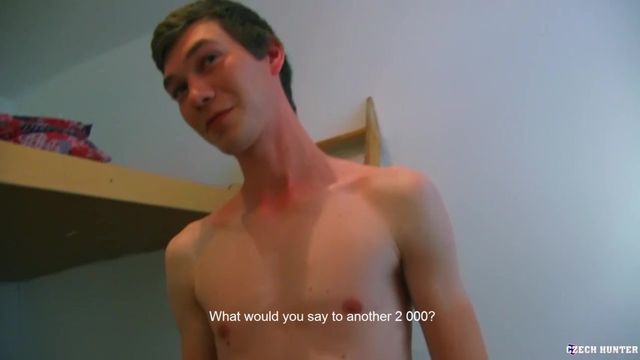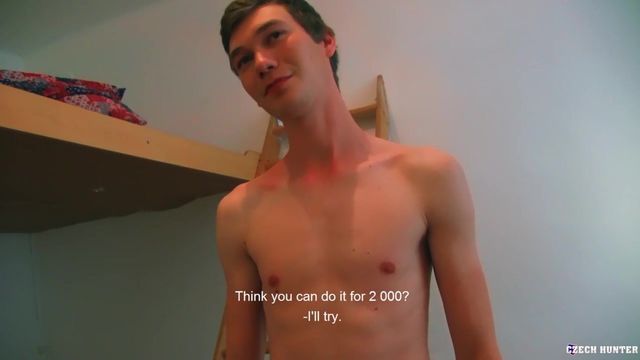 - Description: Erik visited his friend in Prague and when I met him, he was on his way back home. He lived on the outskirts and didn't have a long journey ahead of him. He had time for a little interview. In this terrible weather, the boy had nothing better to do. My camera was not a problem and when I told him he could make money, he was genuinely interested. He told me some funny stories, one of them was quite spicy. This wasn't an innocent guy at all. He wanted money but it wasn't easy to negotiate with him. The weather wasn't suitable for an outdoor action so we hid in a flat I had nearby. There the boy got a chance to earn the money I promised him. He never done anything gay so I had to show him the ropes. Erik had a gentle mouth and tight ass, the perfect combination. I left the boy a bit stretched but happy.
