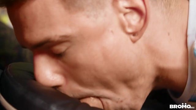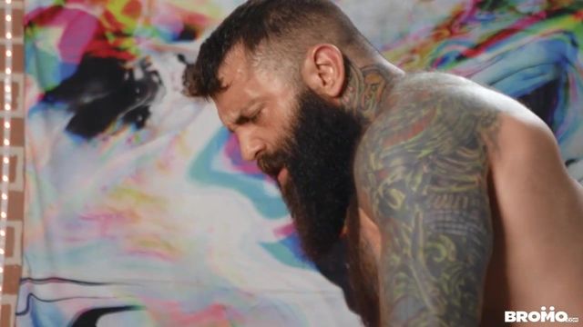 Lev Ivankov was just planning to get some new ink, but when he spots artist Markus Kage's bulge through the hole in the table, he decides he wants some dick first! He pulls Markus's cock out and sucks it, and the tattoo artist fucks the bottom's face, then strips him and ties his wrists and ankles together with rope before penetrating his hole. Markus turns Lev on all fours on the table, pounding him doggystyle, then unties the twink so he can ride his cock. Lev cums as Markus fucks him missionary, then the top leaves his mark on Lev's face!