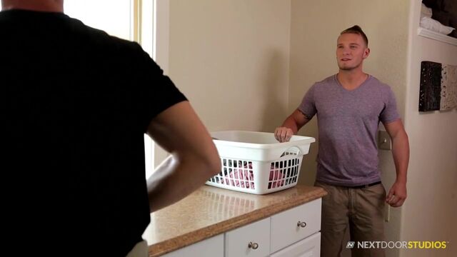 Mark Long is quite a horny young man. So horny, in fact, he's jerked off in semi-public places more than a few times. He's never been caught, but there've been a few close calls. Today, as Mark waits in the community laundry room for a load of laundry to work through a cycle, he gets that feeling where he's just get off!Jake Karhoff is a fellow condo resident and is having a nice, lazy laundry day. But when he discovers that the door to the laundry room has been locked, he must find Pete, the building manager, to unlock the door.When Jake enters the room to find Mark, mid stroke, Jake stays cool and doesn't act too excited. Mark, on the other hand is extremely embarrassed. He pulls up his pants and turns beat red. Jakes certainly likes the look of Mark's enormous cock. And in this particular situation, he can pretty well guess that Mark might be game for some fooling around, seeing as he must be very horny.When Jake suggests they hookup, Mark doesn't hesitate accept his advances. Jake goes to Mark and they kiss passionately. Soon, Mark's dick is making its second appearance, and Jake is slurping it as deep as his throat will allow. Mark can't believe his luck! The hot guy he's seen around the condos is sucking him off.It's not long before Jake is presenting his tight hole for Mark to fuck. Once Mark squeezes his swollen dick into Jake's ass, the action intensifies quickly. Mark bangs Jake's hole while Jake props his foot up on a dryer. After a while, they move to a chair where Jake climbs atop Mark and goes for a good, stiff ride. Mark loves how much Jake enjoys taking his fat cock.They move back over to the dryer to finish things off with a hard fuck session, where Jake ends up getting blasted in the face with Mark's hot, sticky cum. Now this was a load worth waiting for!Enjoy!
