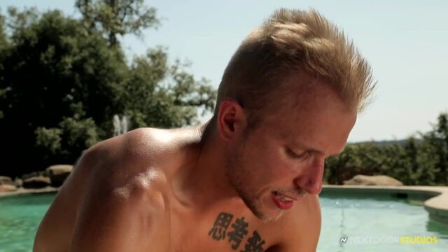 They're 2 peas in a pod and they're making a big splash! When these two Buddies get together, you can bet there's gonna be some laughter and fun.As sexy Rob Ryder soaks up rays, poolside, his mischievous friend, Alex Greene, dives in and swims toward unsuspecting Rob. Alex surfaces and splashes cold pool water on Rob, quickly rousing him from a pleasant daydream.Rob never lets Alex get one over on him without payback, so a wild dunk battle ensues. As they play around, both Alex and Rob become amorous from their nearly nude bodies rubbing against one another. They slow things down, drift toward the edge of the pool, and start the hot make out session.Things heat up even more when Alex pulls down Rob's shorts and takes his throbbing cock into his mouth. Rob loves the feeling of hot sun while enjoying a deep-throat blowjob from his most attractive friend. And boy does Alex know how to handle a hard dick!They move outside of the pool, where Rob pulls out Alex's incredible large dick and returns the favor. Rob savors the fat, swollen meat on his lips as he slurps it with pleasure.Alex wants to get fucked really badly after the hot oral, so he lays back and allows eager Rob to slide his fat cock into that sweet, tight hole. Rob really goes to town on that sexy ass. But Alex isn't the only one at the pool who likes to get his hole banged...the guys soon switch so Rob can take a pounding too.It's a playful, hot day in the sun as these amazing boys let the heat lead them into intensely sexual territory. Please join them...but don't forget to wear sunscreen!