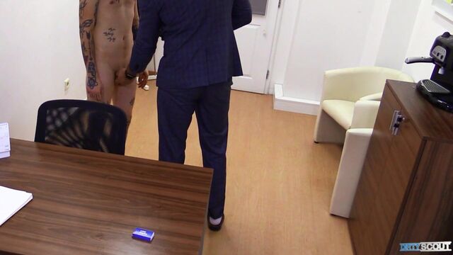 I knew from the very beginning that this interview was going to be fun. This young applicant was very cute and nicely lean. I started getting a boner right away. The guy was tired of his job as a machinery repair man and was looking for something less exhausting. That wasn't a problem. There are plenty of comfortable jobs in Prague if you're willing to pleasure me. Eventually I hired the man as a claims adjuster for an insurance company. He liked the job, but our mediation fee was too expensive. I didn't waste time and told him how much I'd like to see him naked. He was surprisingly okay with that naughty deal. Another surprise was his body covered in tattoos, it actually looked quite cool. Also, his boner was pretty good. I must say that this dude was one of the best fucks I had in weeks.