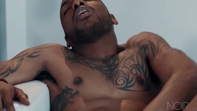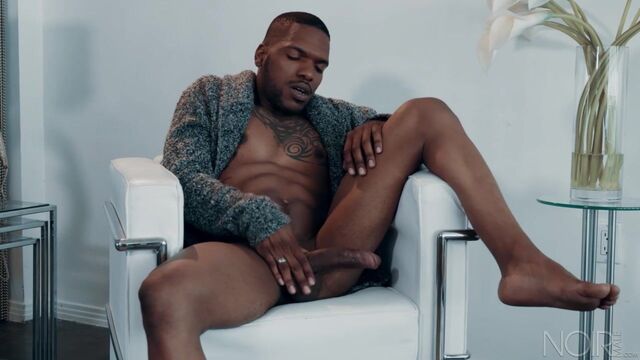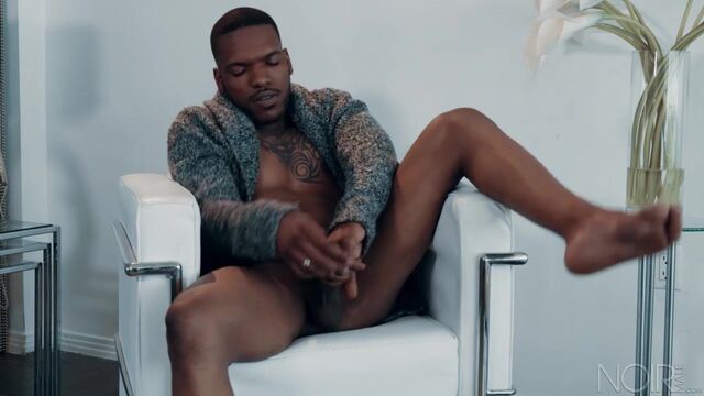 Black hottie Aaron Reese masturbates in an armchair - Noir Male