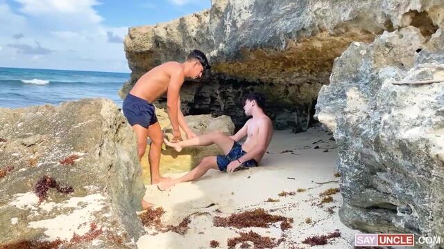Cute influencer twink Marco shares the story of how he met his muscle hunk stepfather Joe Dave. While visiting his mother on vacation at the beach, he meets Joe and they go for a swim together. While in the ocean, Marco gets stung by a jellyfish so Joe offers to pee on his wound to alleviate the pain. With his huge dick out, Marco can’t help but to get horny, so Joe decides to get a taste of his new stepson… right there on the beach!
