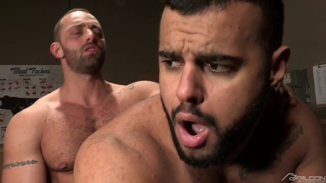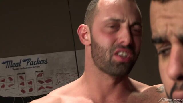 Tony Orion needs a job and the SF Meat Packers are hiring. He tells cigar-chomping foreman Fabio Stallone his lack of skills are offset by the fact that he's strong, he's flexible and he works really, really hard. Fabio's cock twitches at the prospect. Some might call Tony a bear cub but Fabio is more interested in his potential as a sex pig. Is Tony ready to get his chops porked? Fabio pulls out a monster uncut cock and puts him to the test. Tony sucks like he came from a feed lot where dick was the only food. He lets Fabio undress him and Fabio is transfixed by Tony's hard, hairy buns. Fabio orders Tony to finger his hole, then he leans in for a sniff and a taste. Tony's loins get a tobacco baste when Fabio shoves his cigar up Tony's chute. Then the meat packing commences. It's a deep grinding fuck that leaves Tony wide-eyed and wet with double loads of jism.