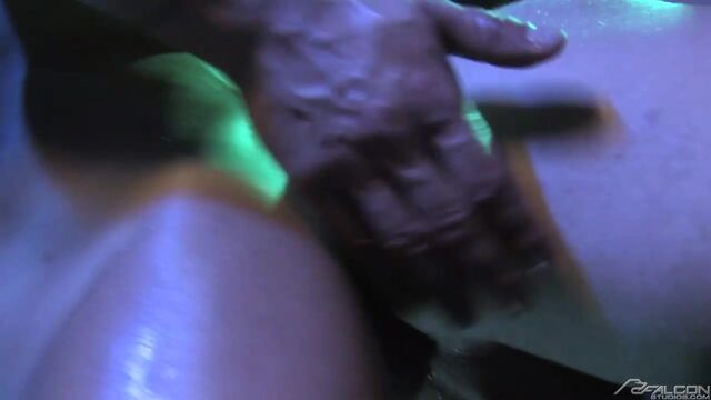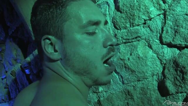 It's late, and there aren't many guys left at the sex club, but Goran still hopes to connect with someone. In the shadows, a muscular hulk, Marc Dylan leans against the wall. Goran approaches, making sure the first point of contact is cock. Marc, wanting the same, responds with a kiss. Goran lifts Marc's shirt and the shadows accentuate his muscled body, from massive pecs to the deep cleft dividing his abs. Goran sinks to his knees in need of harder flesh to hold and to suck. Marc wants to suck, too, but Goran would rather eat his meaty ass, so Marc holds his cheeks apart. His hole provides the appetizer and the main course, when Goran puts his meat where his mouth was. Marc bucks, his cock and heavy balls swaying in counterpoint to Goran's thrusts. The find something for Marc to lie on and for Goran to get the leverage to fully deliver a power fuck. Goran's orgasm begins with sweat coursing down his tanned torso followed by a thick white eruption that bastes Marc's stomach.