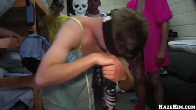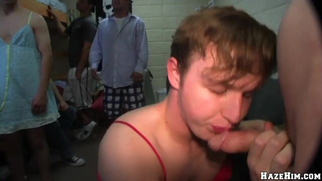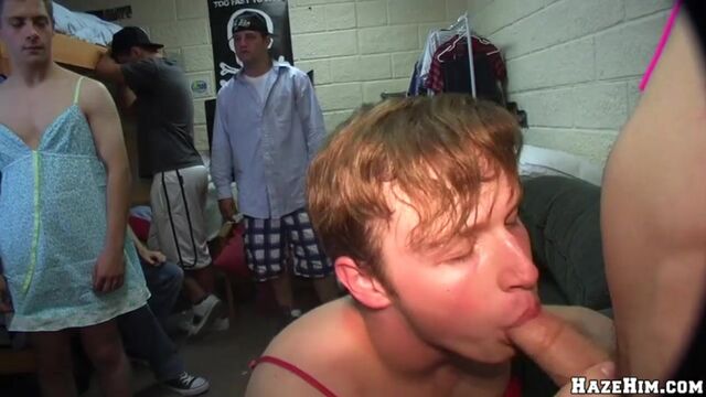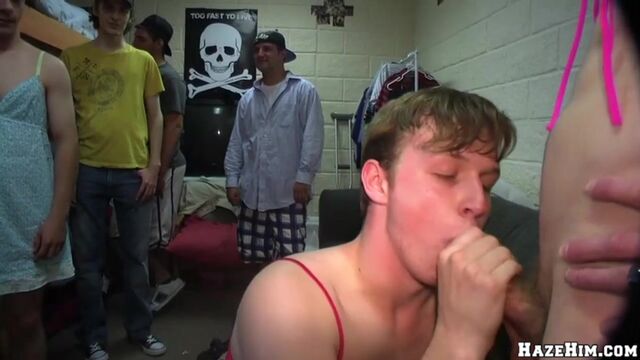 Sometimes we look at these crazy college submission videos and think to our selves "what have we started?" For example this week we received a tape labeled "Lingerie" at first we were curious as to what these frat boys did to their poor pledges. as we watched the video we couldn't stop laughing at the craziness that ensued. These poor wannabe frat boys had to dress up in lingerie walk around the dorm house and collect random things such as condoms,soda cans,and even a microwave. but that wasn't all once all the pledges were back in their dorm their soon to be brothers had them pillow fight and spin on a baseball bat where they fell they had to do something sexual with whom ever happen to be standing there. this one got pretty wild. it still amazes me how far some people would go to be part of something. lol anyway fuck it its better for us because this shit is golden! enjoy