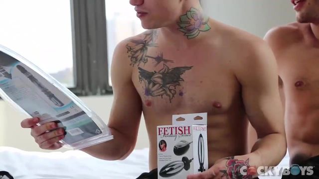 If you've watched the scene with Colby Keller and Ricky Roman, you'll know we've been having some fun experimenting with some new sex toys. Because, who doesn't love playing with toys? Our boys do of course!As part of a series we've affectionally named Men, Boys & Toys, we had Ty Roderick and Jake Bass try out a few little "gifts" we got them-- a fleshjack (a staple for any toy collection), a shock-therapy anal probe (Jake hates that word-- "probe"), and a gyrating, twirling dildo (we've nicknamed it the "pleasure-stick").When we got Ty and Jake together, there were some definite sparks in the room-- and not from the electric toys... But the toys did add to it! They were intrigued by the array of new toys and excited to try them out on each other. Ty started by loosening Jake up with the dildo, and the whole time you could see in Ty's eyes that it was getting him eager to get into Jake's ass. But like any good meal, you gotta have your appetizer before the entree!They take turns playing with each other's asses with the electric anal probe. And boy, we weren't expecting Ty's reaction to it! We'll save the surprise, but let's just say Ty found his new favorite toy. But Ty wanted more. He came to plow Jake and he wasn't leaving until he had accomplished that. And, boy, did he accomplish it! Ty starts fucking Jake from behind and then on his back and the whole time Jake is desperately trying not shoot his load. Ty then takes a break to double-fuck the fleshjack with Jake, before he starts hammering Jake again. When Jake finally couldn't hold his cum in anymore Jake's dick erupted like a volcano and kept shooting loads of cum one after another. And that wasn't all! After Ty shoots his load, Jake decides that he has more cum left in him and starts pumping it out of his cock - again!! This one is really a "must-see-to-believe-it" type of scene. Enjoy, Jake Jaxson