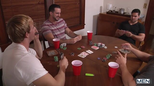 The guys are playing poker when the boy next door Tino Cortez walks his sweet ass inside the house searching for his neighbor's big dick. Turns out he gets a whole lot more cock than just his neighbor's. Watch Adam Bryant, Aspen, Cameron Foster, and Phenix Saint plow Tino's hungry hole.