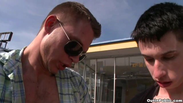 I'm with my boy Zach today and we're really just looking to get him some ass. He's horny as hell today and I'm ready to watch him get fucked by somebody! We found him a guy that seemed a bit shy at first, but he was down to mess around after we offered him some money. We had spotted this abandoned car lot across the street earlier so we all headed over there. Mickey showed us his cock like he promised, and Zach promptly put his mouth around it and sucked the hell out of it. One thing led to another and Mickey was fucking Zach against an SUV a few moments later!! These two really liked each other, and they both got a great workout in the sun!