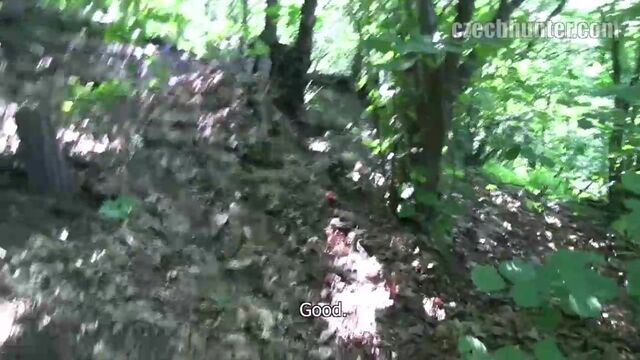 Curly twink boy takes a facial in the bushes - Czech Hunter