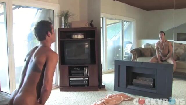 Muscular Kevin Crows jerks to his own reflection - Cocky Boys