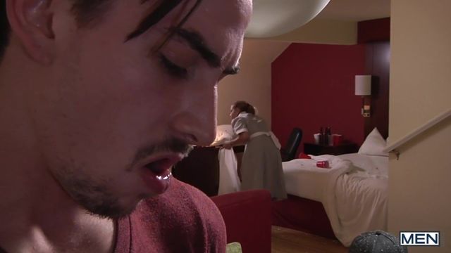 When Johnny Rapid and Jack Hunter wake up after partying in their hotel room the night before they realize they should probably clean the trashed room. The only problem is that Johnny is experiencing some morning wood and Jack has always wanted a taste of his juicy cock. Jack reaches for Johnny’s dick and soon the boys are fucking while housekeeping roams the room.