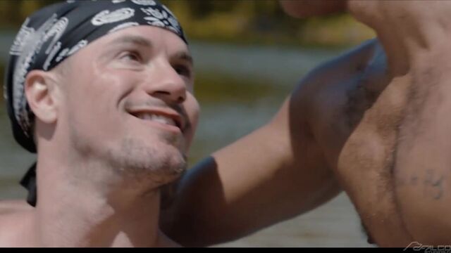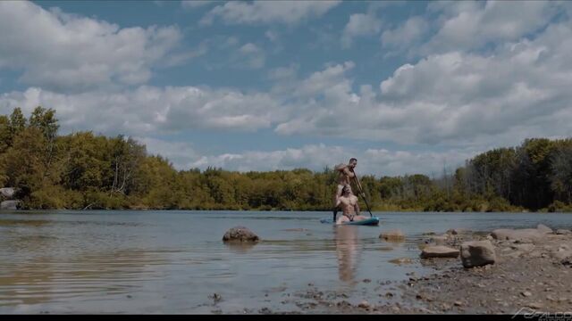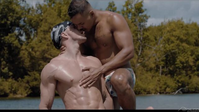 While only surrounded by thick forests and a seemingly never-ending lake, pals Skyy Knox and Milo Madera suddenly realize that they're alone and can do whatever they want. Without even getting off the paddle board that they're both seamlessly balancing on, Skyy begins to blow Milo. The muscular Skyy then lays his back on the board and throws his legs into the air as Milo's long dick barebacks his ass. After creating endless ripples in the water from each powerful thrust, Milo pulls out of his pal's bubble butt and readies his untouched hole for Skyy's XL cock. Milo backs it up onto Skyy's meat until the top's balls can't take anymore and explode a mess of jizz all over Milo's cheeks. Still effortlessly balancing on the paddle board, Milo stands up to breed Skyy's open mouth before the two hunks ditch the board and jump into the water to continue their day.