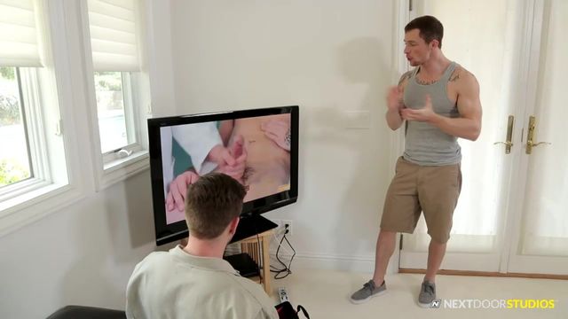 Markie More's Porncast subscription is just not cutting it lately and he is just about fed up. All he's looking to do is bust his nut and he can't seem to get any reception, so he's called for a technician to handle his problem.Lucas Knight shows up promptly, and seems to get Markie's system mostly back in order, and that's when Markie notices that the guy on his screen is the same guy fixing the cable connection. Lucas sees that he's been discovered, and feels embarrassed. but Markie assures him there's nothing to be ashamed of, especially considering the tool that Lucas is packing. Lucas seems relieved but Markie is already envisioning a little extra service from his technician, and Lucas, trying to save the account for Porncast, feels obliged to meet Markie's needs.Markie slams him against the window seat and begins sucking him off, as Lucas' giant cock swells inside Markie's mouth. Markie sucks on one of Lucas' balls as he jacks himself off, and Lucas stands him up and throws him onto the bed, going down to satisfy his customer. Markie pushes Lucas' head down onto his cock and he slobbers all over it diligently. Markie's hard on is insatiable, but first he wants to feel that fat dick inside him, so Lucas lays him down and gives him every inch, fucking him slowly at first as Markie strokes himself, then faster and faster, until Markie is almost ready to bust.Markie then flips Lucas over and takes him from behind, and discovers that Lucas' ass is just as nice as his cock, propping Lucas' legs up on his muscular shoulders as he pounds away, pulling out and launching as they take turns blasting each other with their hot loads. Say one thing about Lucas' technique: he knows how to make a connection.Enjoy!