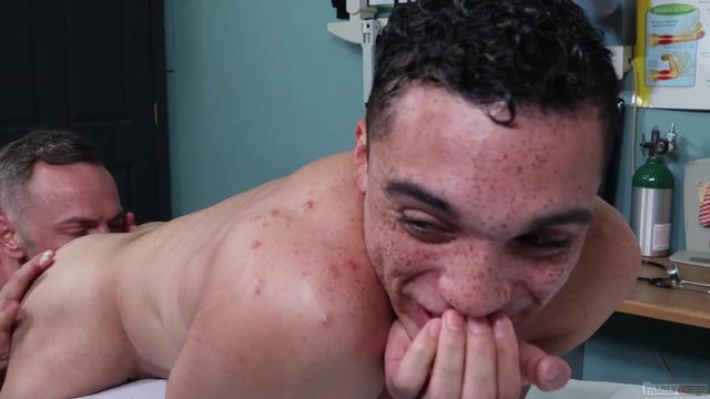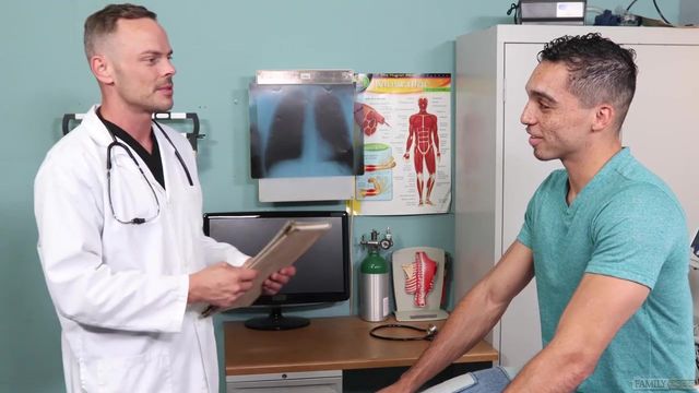 Amone Bane has been cumming in his bed and he seeks advice from his stepdad doctor, Trent Summers. He confirms that it is normal and ends up with something better than a sucker for his doctor's appointment.