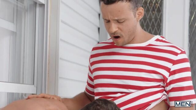 Clark Delgaty gets home early from his jog to catch his husband Nate Grimes cheating! Nate tells his lover Skyy Knox to climb out the window, but the naked cheater gets stuck, and when Clark enters and sees a bare ass poking out, he thinks it's his man's, immediately spanking it and fingering the hole. Skyy gets so horny that when Nate comes outside to see what's the holdup, he starts sucking Nate's dick as Clark fucks him doggystyle! That's when Clark catches them and pulls them both inside. He roughly feeds Nate his big dick, then hatefucks him doggystyle before enlisting Skyy to help DP the cheating bottom. Clark and Skyy take turns fucking Nate piledriver, then Nate eats Skyy's load.