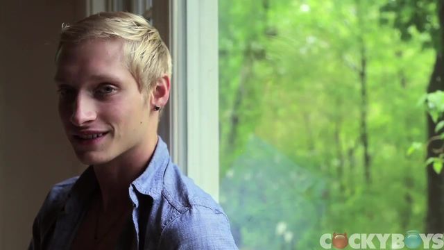 Max Carter is generally a timid guy, but don't think that means he's unsure of himself. Especially when it comes to sex, he loves to take control by grabbing the guy's neck as he fucks him. He's worked in the industry for two years so he has a lot of experience, and we've already seen him getting fucked by Ty Roderick, but we really wanted to get to know him on a personal level.There was a light storm when we interviewed him, but he told us that the rain actually turns him on. He said he loves staying inside with his boyfriend when it rains, just laying in bed all day. But he also likes to go out and explore, so we followed him into the woods as it drizzled and he started to get really horny.Along with his innocent blue eyes and blond hair, Max has a really nice cock. And he really knows how to use it, which we didn't know until we had retreated indoors for the day. Even though the rain was starting to let up at this point, Max's cock spewed an entirely different kind of shower all over his six pack.