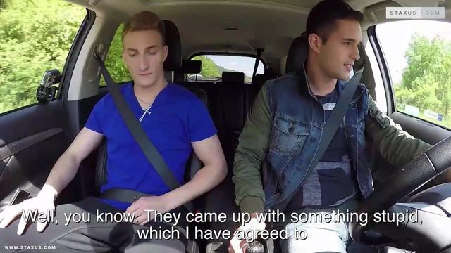 If you’ve ever wondered what it’s like to give or receive a blow-job whilst sat in a drive-through car-wash, then wonder no more! Sam Williams takes Ryan Torres on a trip to the country – via a nearby garage – and soon discovers that his passenger has a taste for the risqué. As a result, a brief session of fellatio ensues, with Torres making the most of the opportunity to slurp on the taxi-man’s gearstick! But it’s not until the two lads make it to the woods that the action really intensifies; with Torres once again making a beeline for Williams’s dick, this time in the boot of the car.To be fair, by this point it’s pretty obvious that the young fair-headed buddy is positively gagging for his companion’s big fat knob – a fact that’s only underlined by the eager way with which he slurps on every aching inch on offer. Indeed, Torres is soon pouting out his arse like a bitch on heat, gasping for Williams to first finger his hot, wet hole and then follow on through with his cock – an invitation that a lad like Williams is never, ever gonna turn down!The look of sweet contentment on Torres’s face when he feels his pucker being filled with all that man-meat is a picture in itself; and it’s not long before the filthy-minded pup has positioned himself on the swollen pole cowboy-style and is riding it with his rump for all he’s worth. Given this level of raw intensity, it’s perhaps not exactly surprising that the fellow is soon creaming like a fuckin’ whore; before Williams knocks out his own pent-up load moments later, leaving Torres to finger the resultant spooge onto his buddy’s lips. Magic!
