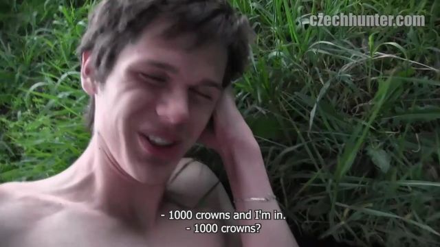 - Description: Prague has a wonderful river-walk. All along the river Vltava you can sit, relax and enjoy the day. I wanted to go to the Zoo again but it was a bit rainy and it looked like a thunderstorm might start soon. So I started to interview some guys right at the river-walk. I was not so successful in the beginning but then I saw a boy sitting on a park bench and feeding some swans and ducks. He looked a bit depressive. Maybe some money would cheer him up? He agreed to sell me his undies for two thousand crowns. He was so much into money that I talked him into giving me a blow job. When I noticed his ass I asked him for more. Well, you must see his reaction. And the thunderstorm which surprised us.