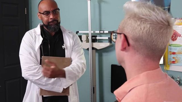 Andrew Connor is suffering from swollen balls so he his visits step dad Dr. Ray Diesel at the clinic. In order to relive some tension, Andrew gets fucked by Ray.