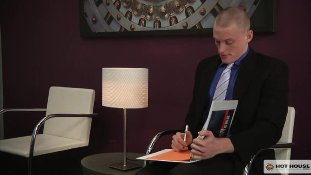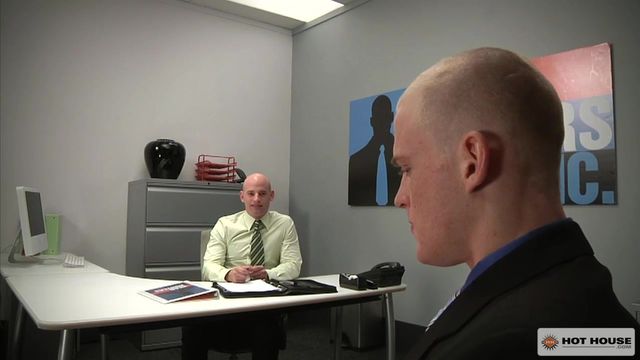 Brandon Bangs reports to Head Hunters looking for work. While he's filling out an application recruiter Patrick Rouge has a few questions of his own; is Bangs willing to go the extra mile to get the right job? He says yes so Patrick gets on his knees to check Brandon's qualifications - with his hot mouth. His expert cock sucking arouses Bangs who wastes no time plowing Rouge deep in his ass. Patrick flips over on his desk and jerks off while Brandon fucks him until they both cum. Bangs nailed the interview - and the interviewer.