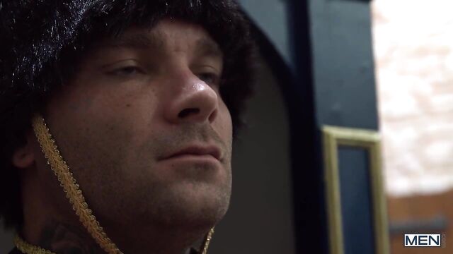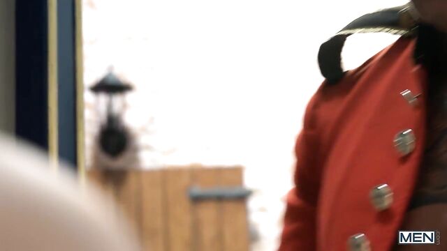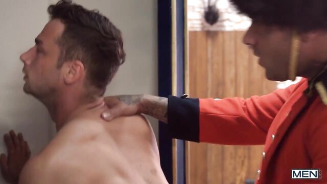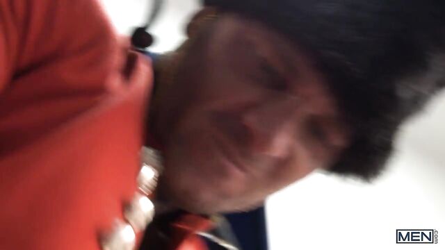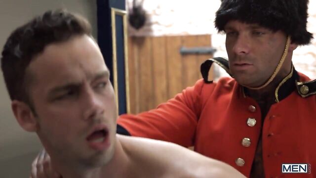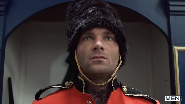 - Description: It'll take more than being poked and talked dirty to by a slutty tourist like Damon Hart to make decorated member of the British palace guard Billy Essex lose his focus...but when the naughty American gets on his knees and grabs Billy's cock, his body definitely starts reacting. Billy can't concentrate on anything but Damon's mouth sucking his dick, and soon he's bending the impertinent Yank over in his guard booth for a nasty doggystyle shag! As surprised visitors look on, Billy cums all over Damon's face. Rule Brittania!