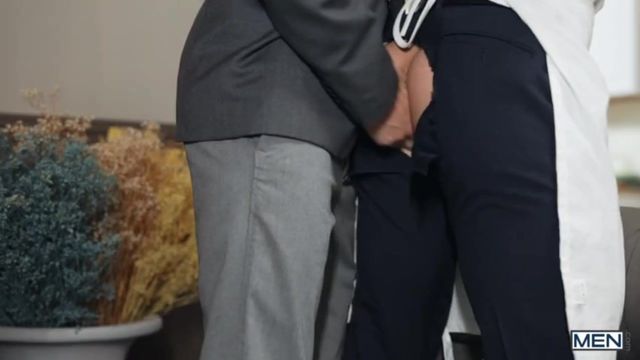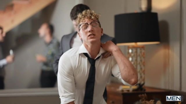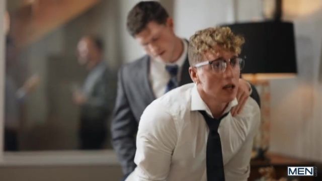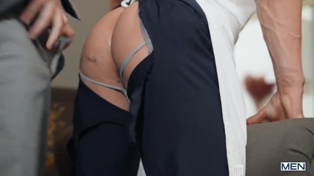 After Paul Canon sucks his boyfriend, Finn Harding's cock at a New Year's Eve party, he doesn't want to spill a drop on either of their immaculate suits, so he spits the load into a glass of bubbly, much to the chagrin of cute caterer, Felix Fox, who swallows it up to make sure it doesn't go to waste! When Felix splits his pants, gentlemanly Finn helps him hide it by standing behind him, but soon gives in to temptation, fingering the blond twink's hole and fucking him doggystyle! When Paul catches his man rimming the caterer in another room, he pops a bottle to turn this party into a fuckfest, covering them in bubbles before taking his turn licking the twink's hole. Felix sucks both cocks, then gets pounded by Paul as he swallows Finn's big dick. Paul rides his bf as the twink feeds him his cock, then Felix gets double penetrated by both guys at once! Paul cums as he rides Felix's cock, then Finn makes the hot caterer blow his load as he pounds him in missionary, then pulls out to cum all over him.