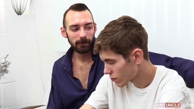 Levi Rhodes is nervous about his new boyfriend, namely having sex. But with the help of his stepbrother, Andrew Powers, and his stepdad, Johnny B, Levi will be a pro in no time. The trio wastes no time getting down to brass tacks and start fucking each other on the couch. Soon Levi is feeling much better about his ability to please his boyfriend.