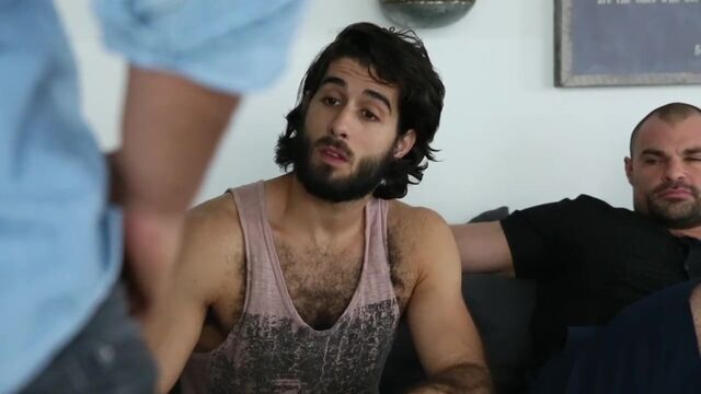 Tattooed, muscular Vadim Black and ripped stud Jaxx Thanatos both have their eyes on the same guy, thanks to a dating app, chiseled Diego Sans. They decide to let him choose who he wants to date, and invite him over for a test run. Hairy-chested Diego can’t pick between the two, and instead offers them both the chance to show him the goods. Will he choose Vadim’s tight hole and big dick or go with Jaxx’s eager, big bubble butt?