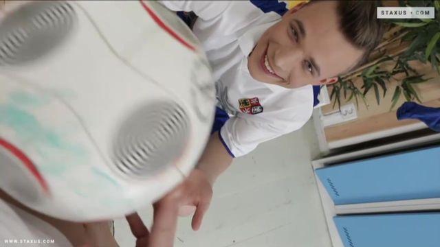 There’s a distinctly “tongue-in-cheek” approach to the start of this locker-room scene, with Florian Mraz playing the part of a footballer who’s accosted by his number one fan (Jace Reed). The joke, of course, is that Reed clearly doesn’t know where to draw the line in respect of getting his young idol’s signature; and the fact that the action is filmed POV-style, which perfectly captures Mraz’s blue, puppy-like eyes as he looks up into the camera, seems only to emphasise the underlying humour all the more.At the end of the day, however, this is porn, not a sit-com; and, having jollied away the opening few minutes, we’re soon treated to the sight of Mraz hungrily feasting on the full, swollen length of Reed’s enormous cock. It’s a task that he undertakes with typical relish – and one that clearly leaves him with an appetite for something harder. As a result, it’s not long before he’s clambering up onto a bench and provocatively exposing his butt-hole as if begging to have it filled – a wish that’s all-too-quickly granted by Reed, whose face we never actually see.Don’t be too disappointed in that respect, however. The fact remains that we get to see every gorgeous inch of the lad’s most important part – though admittedly it’s soon slipping easily into Mraz’s ass and filling the lucky lad to the max! From that point on, the young bottom quite literally has the time of his life – emphasised ultimately by the almost unbelievable quantity of jizz that spews from his dick! Topped only by the tsunami of goo that Reed sprays over his pretty face a few moments later.