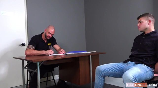 After Dante Blaise gets caught stealing shoes, officer Cliff Jensen brings him into his office for interrogation. But Dante has a sharp tongue and gets under Cliff’s skin immediately. Now Cliff wants to punish Dante and won’t let him get off the hook so quickly.