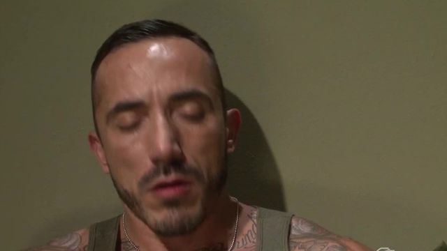 With an array of tatts decorating his body, with his dark rugged looks, and with his bold machismo, Alessio Romero is undeniably one hot stud. There's no bullshit with this guy; he knows what he wants and that's some Relief. He's got an itch to get his rocks off, so he tackles his cock with wild abandon, lubing it with spit so his hands can glide smoother up and down its length and even wrapping the chain from his dog tags around his balls for added pleasure and pain. Alessio pants and then yelps as he finally lets go and soils the carpet with puddles of cum.