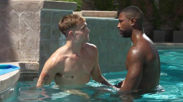 When Reign and Trent Marx discover that they have the outdoor pool all to themselves, they don't waste a second before stripping down and getting ready for an intense, poolside bareback session. Reign sits on the edge of the pool as Trent works his way up and down the stud's curved shaft. He swallows every inch of the stud before getting out of the water for Reign to service his hole. Now on all fours, a glistening Trent softly moans as the top's long dick hits his insides in all the right spots. Things speed up as Reign pumps himself harder and harder into his swimming buddy's asshole until he's pulling out to shoot his creamy ropes all over Trent's used cheeks. After draining himself, Reign kneels down and commands an about-to-bust Trent to unload his juicy nut all over his bare face.Â