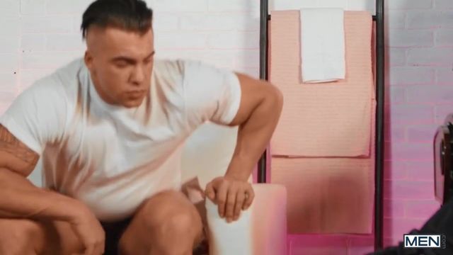 Phillipe Massa isn't too excited when his girlfriend drags him for a couples pedi, until horny twink nail tech Ryan Bailey promises to do everything to make Phillipe's first time exciting! Phillipe has a seat in the pedi chair, and when he catches Ryan sniffing his socks and licking his toes, he pulls out his cock to jack it as the twink worships his feet. Ryan sucks the top's cock, then gets face down ass up to get fucked doggystyle. When Phillipe's gf catches them, she storms out, but the guys don't miss a beat, Ryan riding Phillipe reverse, then getting his ass pounded on the pedicure chair. Phillipe fucks the bottom missionary and fills him with a creampie!