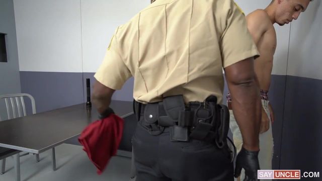 After security officer Aaron Trainer brings young perp Amone Bane to the backroom for questioning, he performs a deep cavity search on him. Officer Trainer tells Amone that the only way for him to let him go without any repercussions is if he lets him have his way with him!